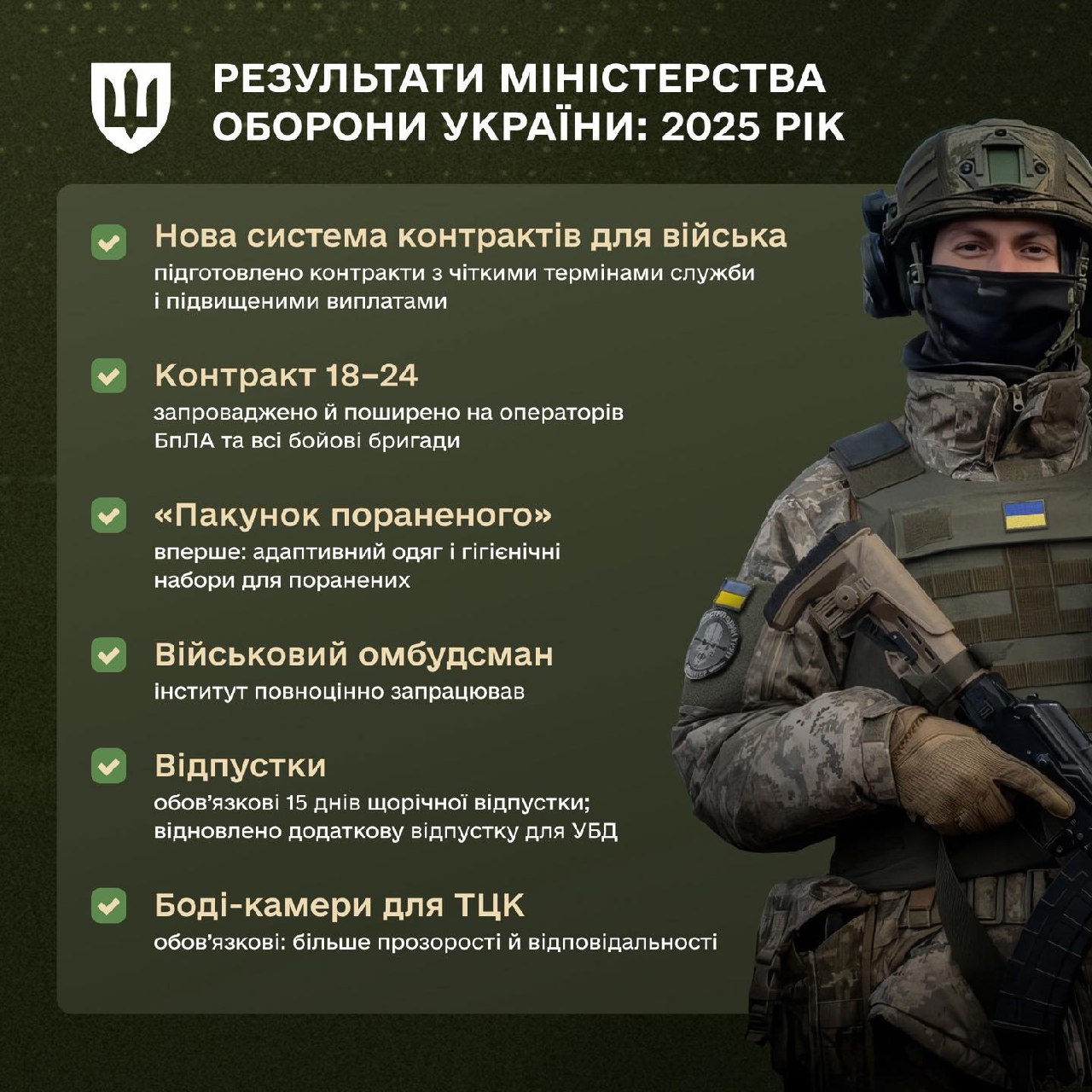 У 2025 році Міноборони запустило «Контракт 18-24», а також підготувало нову систему контрактів із чіткими термінами служби для військовослужбовців.