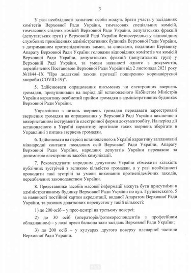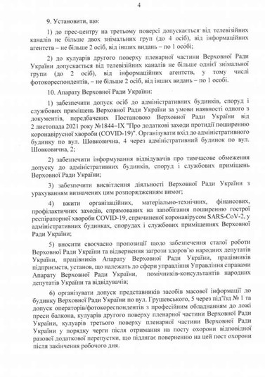 Згідно з розпорядженням, до парламенту пускатимуть лише тих, хто вакцинувався від коронавірусу чи має негативний ПЛР-тест.