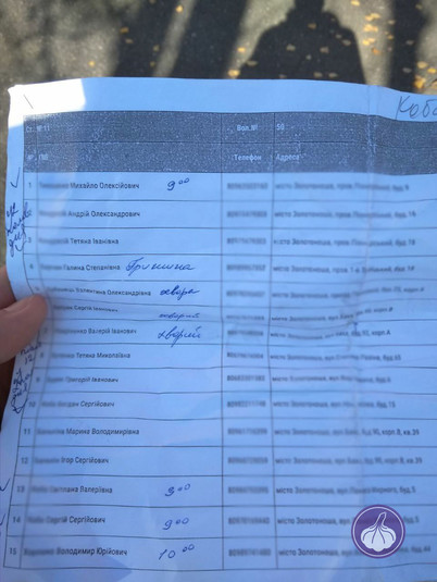 У сусідньому населеному пункті Деньга громадяни відзняли на відео депутатку селищної ради і колишню голову громади Ларису Головань. Вона сиділа на лавці і приховувала списки, які дуже схожі за своїм оформленням на ті, що виявили у Золотоноші. Мають таке ж форматування і згори сіру смужку.