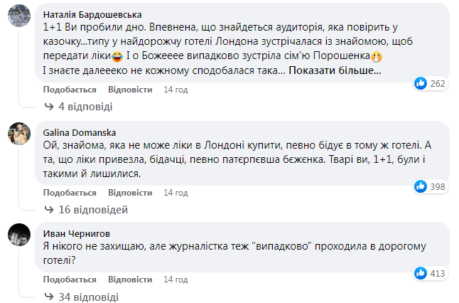 Крім того, під сумнів українці поставили саму історію журналістки, яка нібито випадково зустріла Порошенків у Лондоні, де чомусь саме у одному з найдорожчих готелів зранку передавала подрузі ліки, які у Британії «неможливо купити без рецепту».