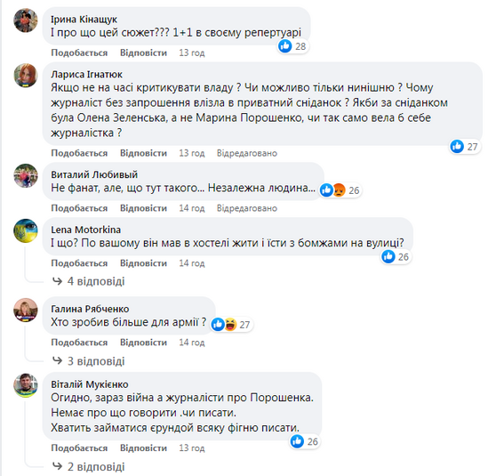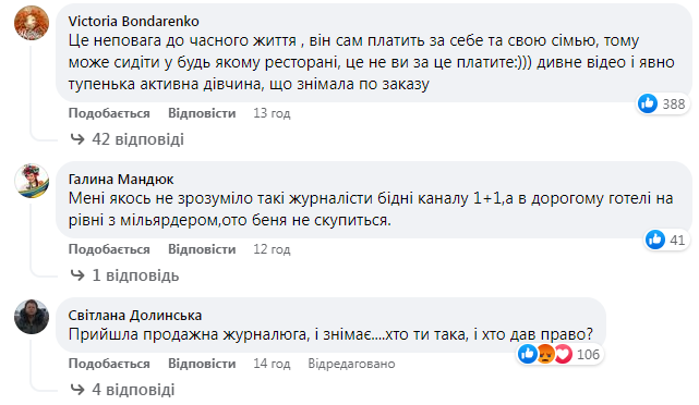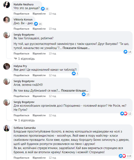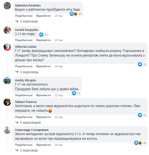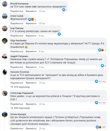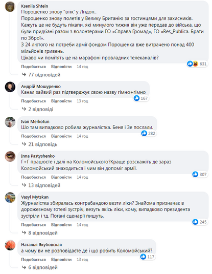 У коментарях під постом на Facebook-сторінці ТСН українці не добирали слів, аби продемонструвати своє ставлення до таких сюжетів під час війни. Каналу нагадали і зв’язок із олігархом Ігорем Коломойським, і поблажливе ставлення до провладних та проросійських депутатів.