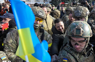 На головній площі Херсона президент зустрівся з військовими та місцевими жителями
