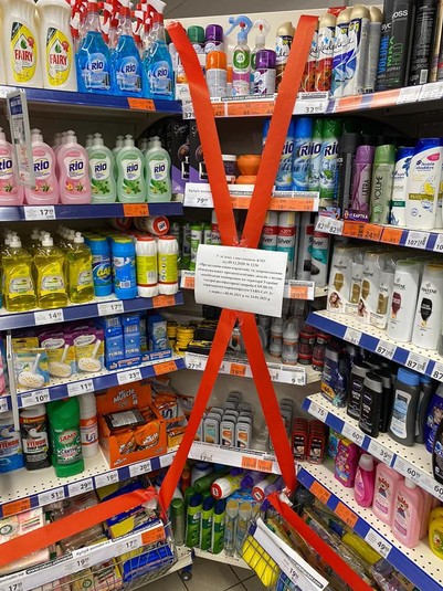 На прилавках супермаркету «заборонені до продажу товари» відгородили від покупців