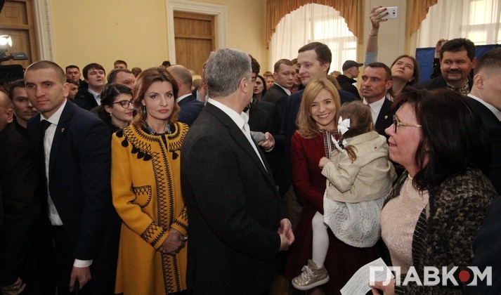 Гості та журналісти почали підтягуватися до «Арсеналу» ближче до восьмої, саме на цей час очікувався приїзд Порошенка. Знову-таки підтримати главу держави у такий непростий для нього момент приїхало не так багато соратників. Серед урядовців були помічені лише перший віце-прем’єр Степан Кубів, віце-прем’єр з питань євроінтеграції Іванна Клімпуш-Цинцадзе та міністр інфраструктури Володимир Омелян. Депутатів з іменної фракції також можна було швидко перерахувати. Ситуацію рятували численні так звані придворні блогери та експерти, «порохоботи» на чолі з Мирославом Олешком.