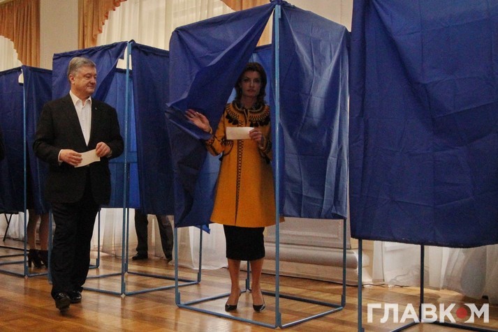 А вже зранку 21 квітня, у Вербну неділю, на яку припав другий тур голосування, глава держави з родиною сходив помолитися до Михайлівського собору. Потім проголосував з «переможним настроєм». Порошенко застеріг українців від веселощів, бо далі буде дуже боляче, натякаючи на невисокі професійні здібності та основний профіль свого опонента. Водночас, попри заклики до виборців прийти на дільниці у вишиванках, сам президент одягнувся у звичайну білу сорочку.
