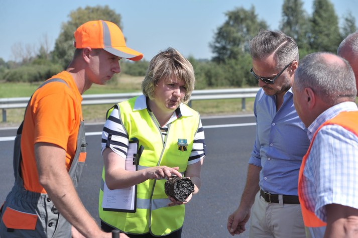 «На ділянці міжнародної траси М-02 перевіряємо якість дорожного полотна. Місяць тому тут почали середній ремонт. Зробили фрезерування старого покриття, уклали вирівнюючий шар і закріпили узбіччя.