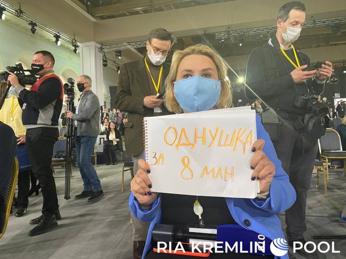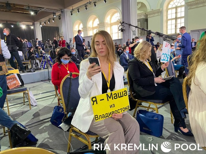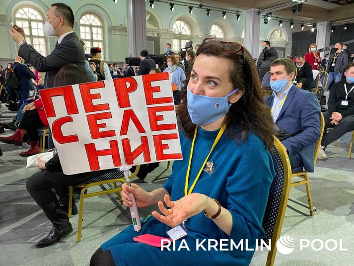 23 грудня у Москві відбувається велика пресконференція російського лідера Володимира Путіна. На відміну від минулорічного онлайн формату, сьогодні зустріч з медіа очна. Проте відстань президентського крісла до першого ряду журналістів складає понад 10 метрів.