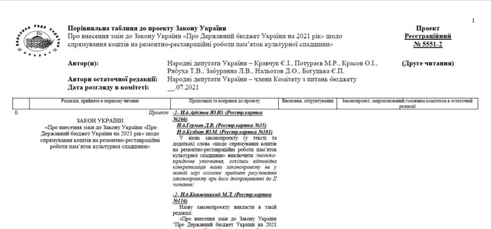 Четверо нардепів від «Слуги народу» подали правки, що стосуються обмеження використання української мови та посилення позицій мови країни-агресора у телебаченні, в освіті та у сфері обслуговування. Ці поправки внесли депутати від «Слуги народу» – голова партії Олександр Корнієнко, Орест Саламаха, Андрій Клочко та Максим Бужанський. Причому, автори бажали «втрутитись в мову» навіть не через профільний закон, а через правки до законопроєкту №5551-2 «Про внесення змін до Закону України «Про Державний бюджет України на 2021 рік». Зауважимо, що 1 липня його було прийнято за основу зі скороченим строком підготовки. Так, пропозиції та поправки до документу № 13, 14, 16 та 17 у разі ухвалення суттєво б звузили сферу застосування державної мови. Зокрема, пропонувалося вивести сферу телебачення та радіомовлення з-під дії мовного Закону, скасувати штрафи за порушення Закону, відмінити іспити для державних службовців та повернути російську мову в освіту.