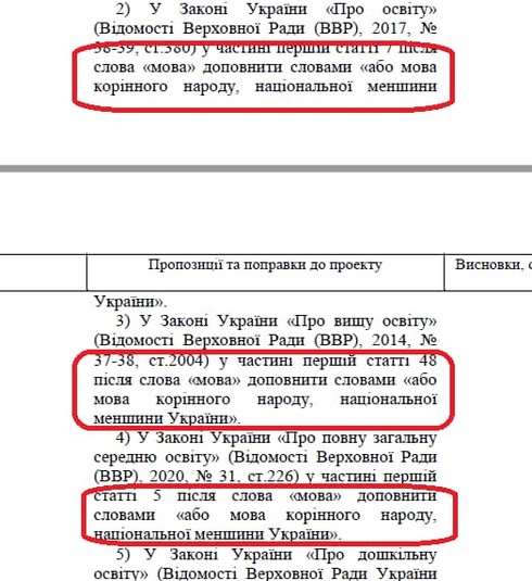 Документ передбачає внесення змін до законів про мову і про освіту та переносить з 2020 на 2023 рік перехід російськомовних 5-11 класів на навчання українською мовою. Проти цього законопроєкту свого часу виступило Міністерство освіти і науки, а також Бюджетний комітет ВР і освітянська спільнота. Ця ініціатива теж не пройшла - 30 квітня профільний комітет відправив проєкт закону на доопрацювання.