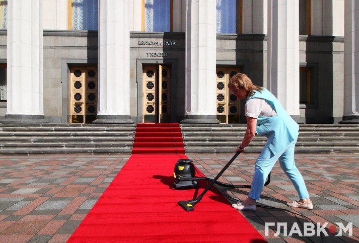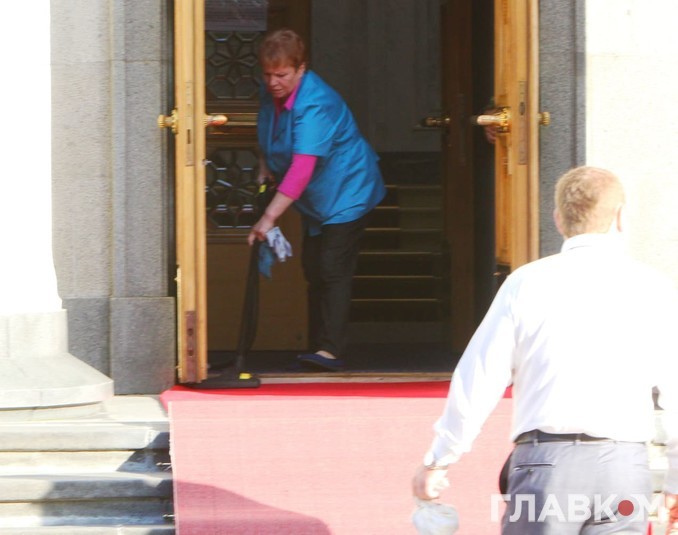Працівники парламенту до останього чистять парадний вхід, по якому шостий президент буде заходити до Ради