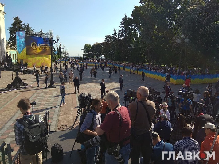 Навпроти Маріїнського палацу також зібралось багато людей. Після інавгурації Зеленський там будет приймати офіційні делегації.