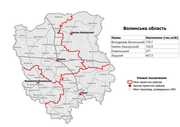 Володимир-Волинський район (з адміністративним центром у місті Володимир-Волинський) у складі територій Володимир-Волинської міської, Затурцівської сільської, Зимнівської сільської, Іваничівської селищної, Литовезької сільської, Локачинської селищної, Нововолинської міської, Оваднівської сільської, Павлівської сільської, Поромівської сільської, Устилузької міської територіальних громад, затверджених Кабінетом Міністрів України;