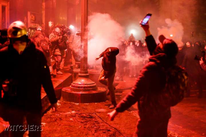 Протестувальники застосували на Банковій димові шашки, петарди та фаєри