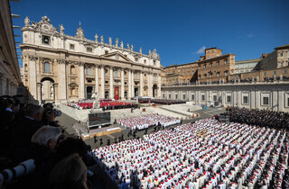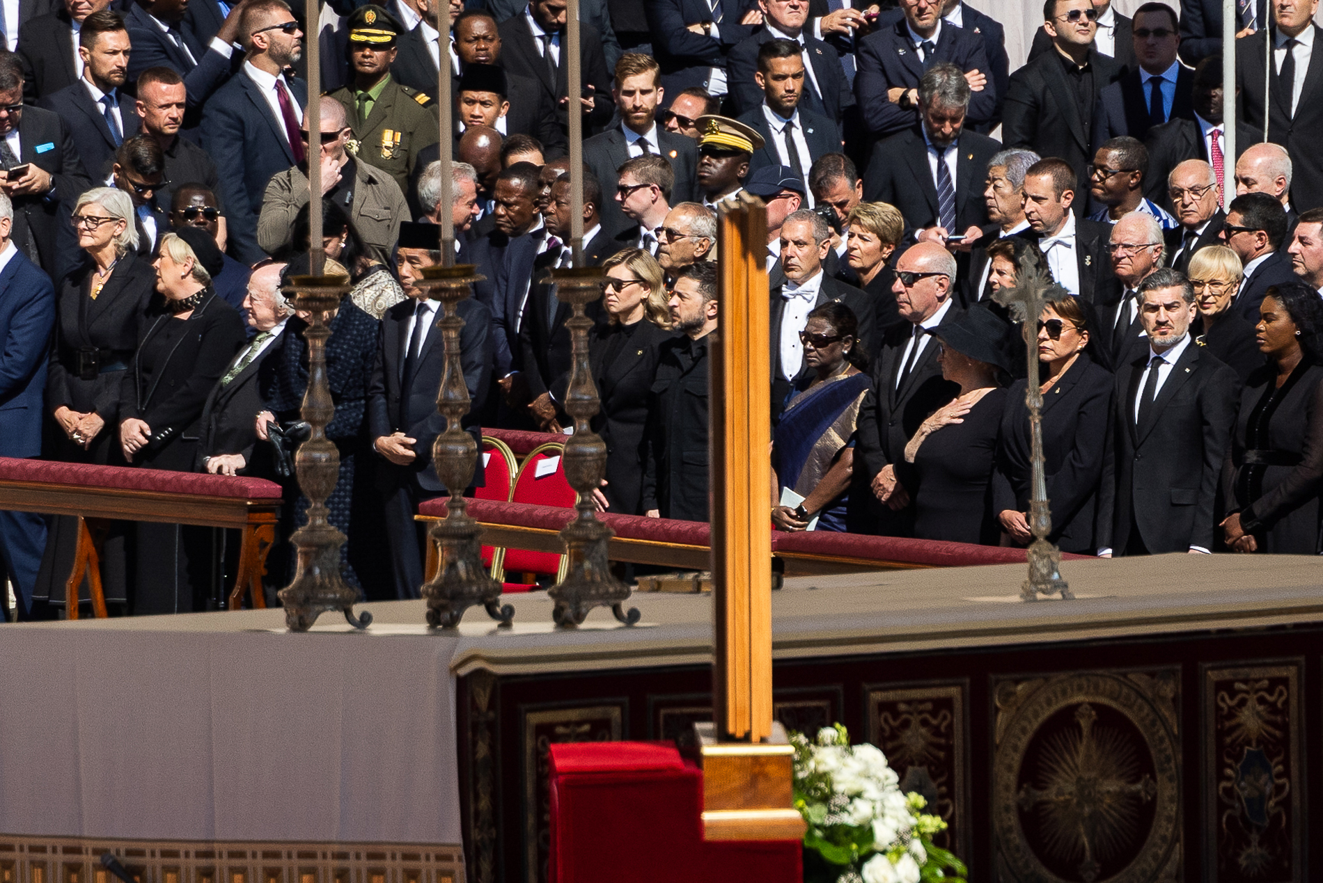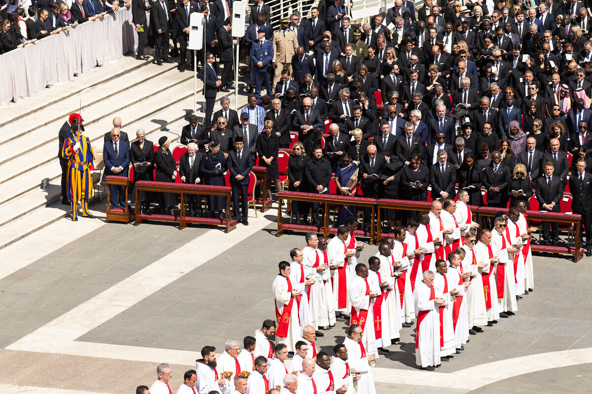 На церемонії були присутні світові лідери, серед яких президенти України Володимир Зеленський, США Дональд Трамп, Франції Еммануель Макрон, а також інші високопосадовці та монархи. Папа Франциск, який очолював Католицьку церкву протягом 12 років, помер 21 квітня у віці 88 років.