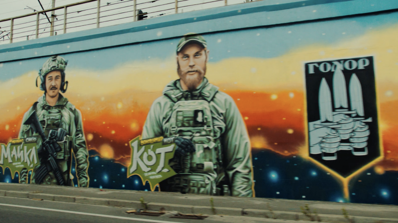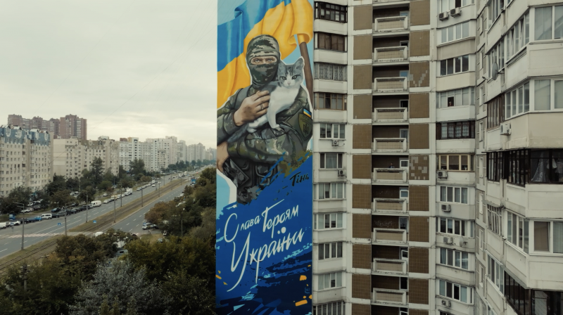 Також у зверненні Володимира Зеленського показано серію муралів біля Дарницького мосту, на яких зображено багатьох відомих українських воїнів. Зокрема: Олексія Недолю («Папай»), Євгена Орлова («Айболіт»), Андрія Подибайла (Naruto), Кирила Зіброва («Зімба»), Тараса Жеребецького («Бармен»), Георгія Халікова («Дядя Жора»), Олексія Найду («Тихий»), Євгена Світличного («Жека»), Максуда Божка («Сябро»), Родіона Савчука («Койот») та багатьох інших.