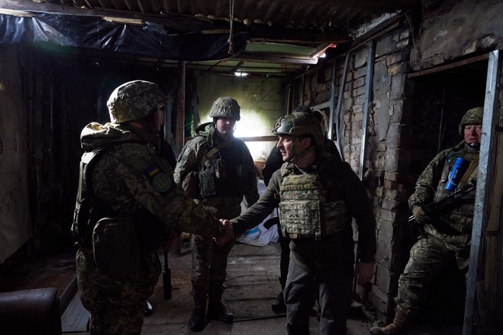 Під час робочої поїздки до Донецької області президент України Володимир Зеленський відвідав позиції українських військовослужбовців на передній лінії оборони, де тривають інтенсивні обстріли. Про це повідомили в пресслужбі ОФісу президента.