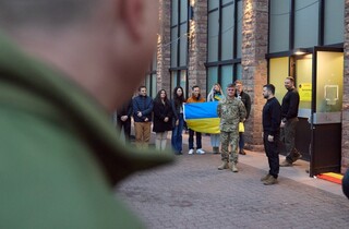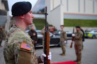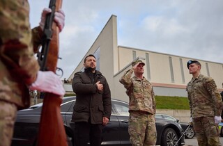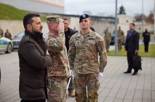 Володимир Зеленський також поспілкувався з українськими військовими, які працюють у Вісбадені у складі оперативної групи ЗСУ при Групі сприяння безпеці України.