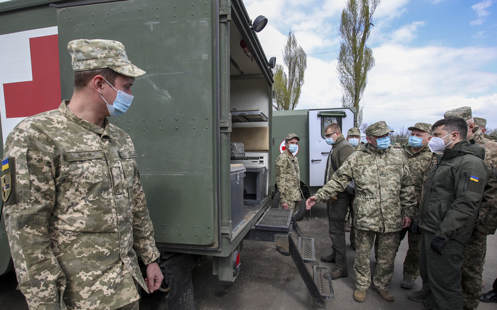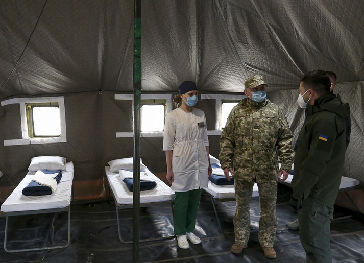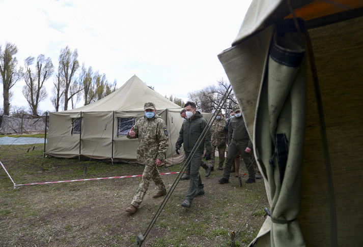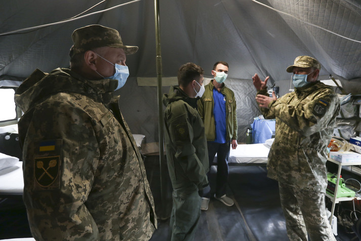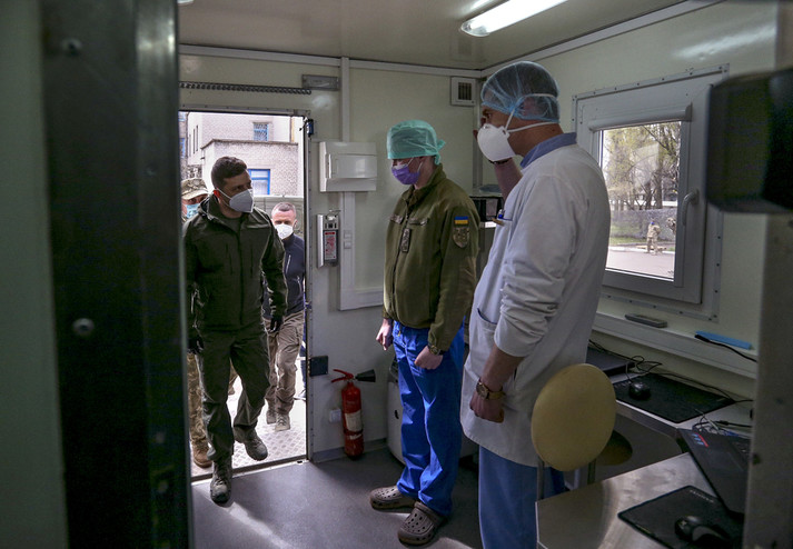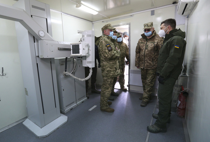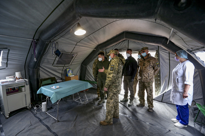 Президент Володимир Зеленський відвідав наметове містечко для інфекційних хворих на Covid-19 66-го Військово-мобільного госпіталю на Донеччині.