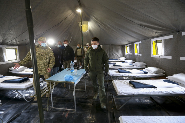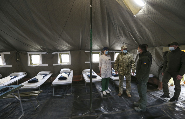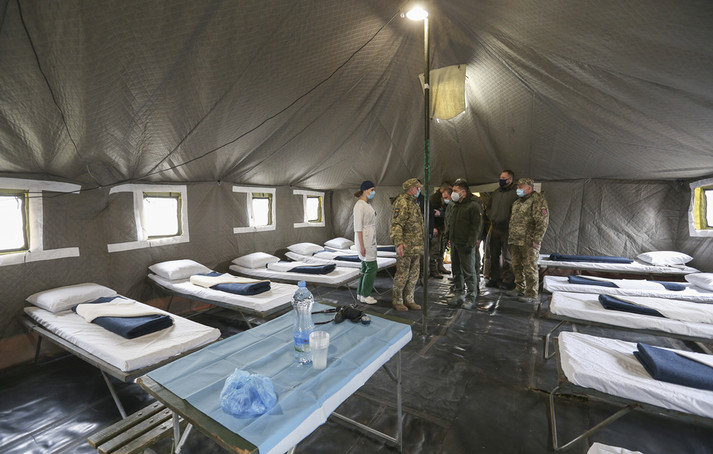 «Президент України Володимир Зеленський ознайомився з функціонуванням наметового містечка для інфекційних хворих на Covid-19 66-го Військово-мобільного госпіталю», – йдеться у повідомленні.