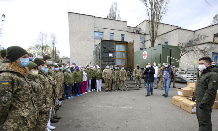 «З порожніми руками не могли приїхати, привезли засоби захисту. Дякуємо вам! Ви знаєте, що ми зараз відправляємо (засоби – ред.) в кожну область, у кожну лікарню, особливо в опорні лікарні, де перебувають саме люди, які захворіли коронавірусною хворобою. І також для нас пріоритет – наші військові лікарі, щоб військових також забезпечити повністю засобами захисту», – сказав Зеленський.