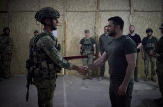 Під час робочої поїздки на Донеччину Президент України Володимир Зеленський відвідав підрозділи ЗСУ оперативно-стратегічного угруповання військ «Хортиця», які відзначились у важких боях на Бахмутському напрямку. Про це повідомляє пресслужба Офісу президента.