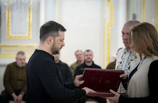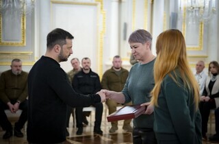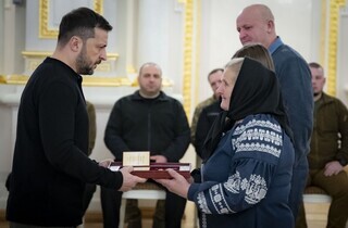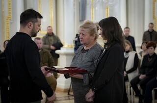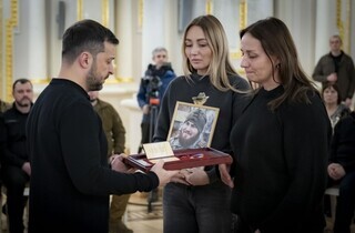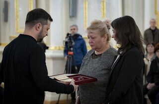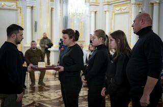 Володимир Зеленський також передав відзнаку «Хрест бойових заслуг» рідним військовослужбовців Національної гвардії Андрія Чобану та Дмитра Чіпака.