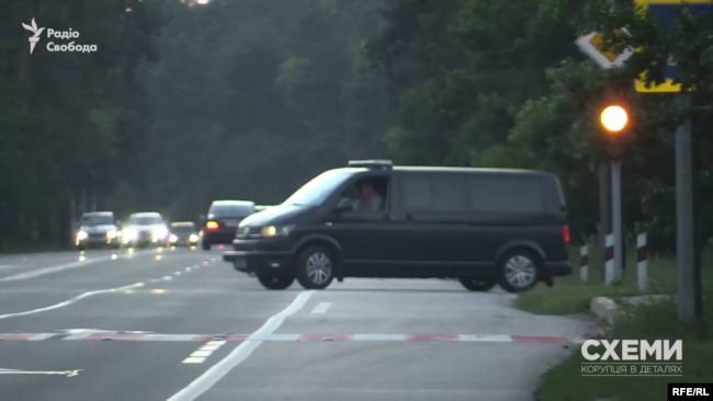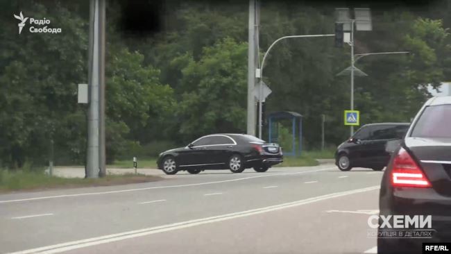 Через годину знімальна група помітила і кортеж Зеленського, який заїхав на територію держдач.