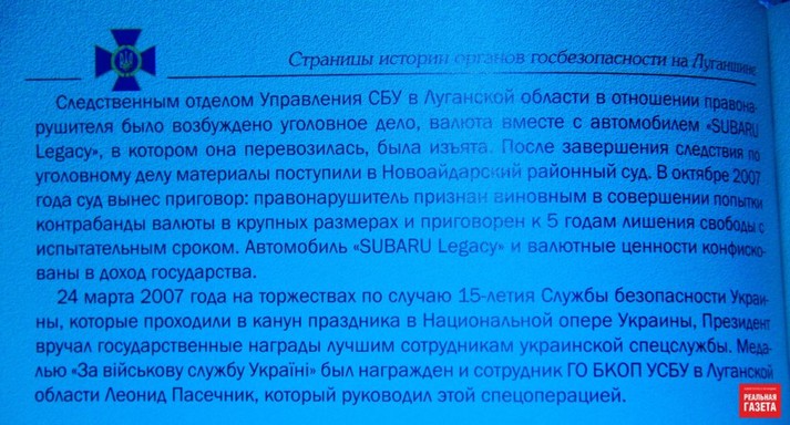 У подарунковій книзі «Щит і меч держави. Сторінки історії органів держбезпеки на Луганщині» знайшлися фотографії того, як Ющенко у 2006 році нагороджує Леоніда Пасічника медаллю «За військову службу в Українi» за затримання великої партії контрабанди в 2006 році.