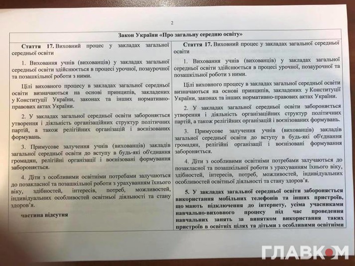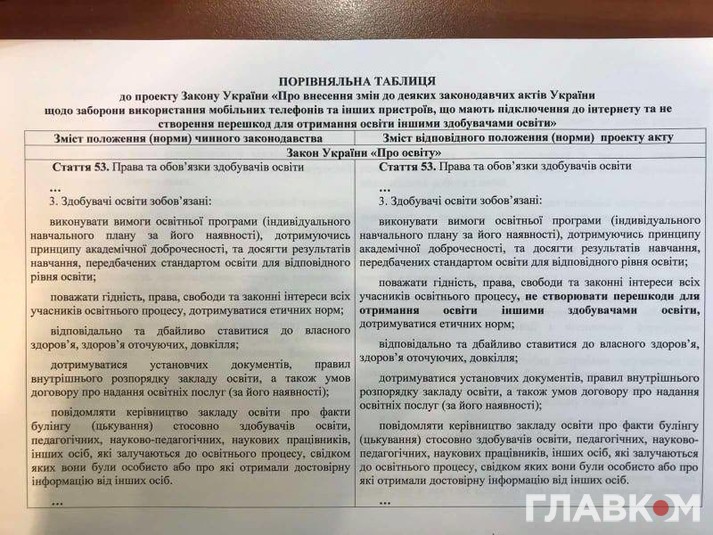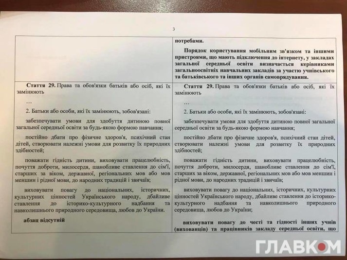 «Главком» отримав порівняльні таблиці до проєкту, з якої можна побачити, якими саме пунктами саме запропоновано доповнити закон «Про освіту».