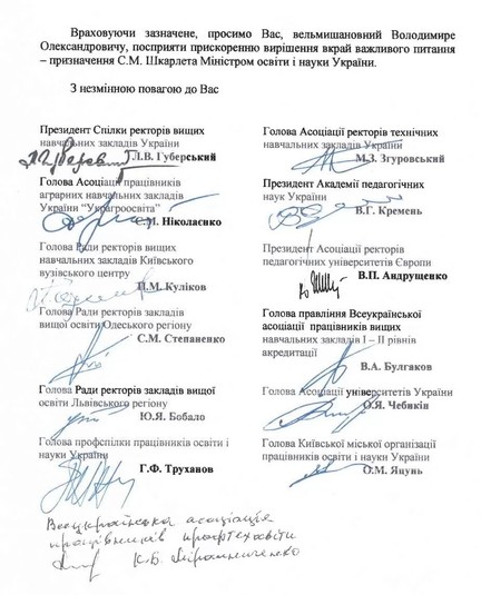 Проте, як зазначають автори звернення, відсутність уже протягом півроку повноправного очільника Міністерства освіти та науки завдають шкоди і освіті, і науці, а також негативно позначаються на авторитеті як самого міністерства, так і освітньої галузі в цілому.