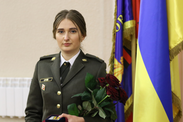 З урочистою промовою перед присутніми виступила випускниця, золота медаліста, лейтенант Анастасія Левченко.
