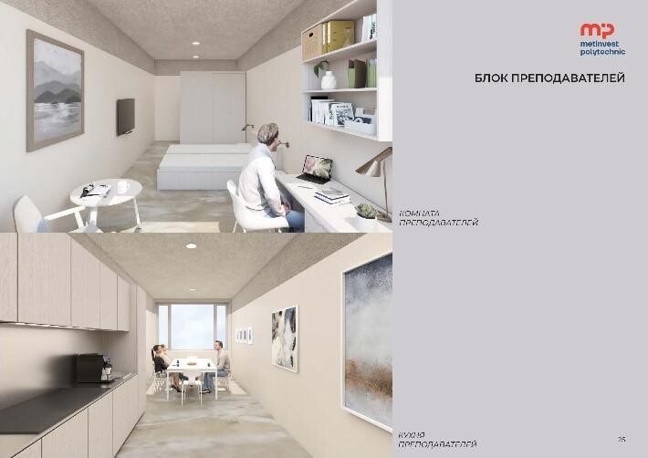 На представлених компанією «Метінвест» візуалізаціях видно, який вигляд матимуть вестибюль університету, буфетна зона, конференц-зал, бібліотека, зали для нарад, лекторії, аудиторії та лабораторні кабінети навчального закладу, а також кімнати гуртожитку. Також показані макети майбутнього спортивного комплексу, що міститиме футбольне, волейбольне та баскетбольне поля, тренажери й бігову доріжку, а також зміненого парку, що оточує студентське містечко.