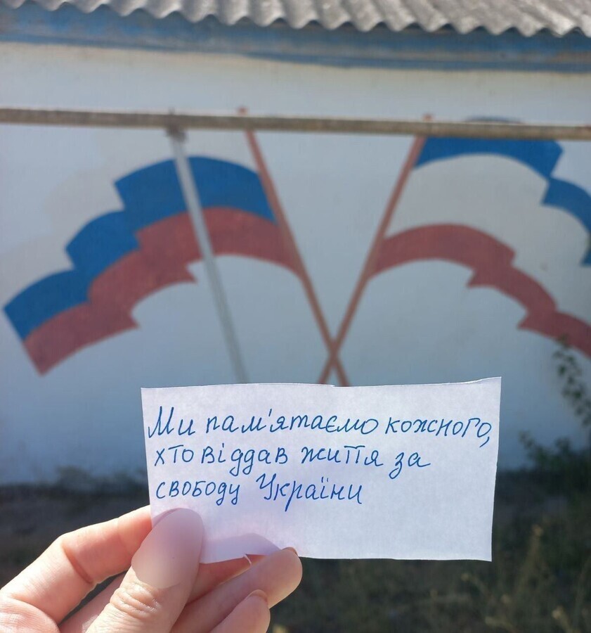 «Поки наші захисники та захисниці виборюють нашу долю на полях бою, ми продовжуємо свій спротив в українському Донецьку. За 11 років окупанти так і не змогли підкорити місто, а прапор України, який ви бачите на фото, – прямий тому доказ», – йдеться у повідомленні руху.