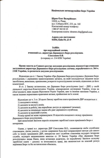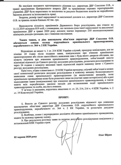 Вищий антикорупційний суд зобов'язав НАБУ почати розслідування проти виконувача обов'язків директора ДБР Соколова, який незаконно встановив собі до зарплати надбавку «за інтенсивність праці», що тільки за травень склала близько 42 тис. грн. Про це йдеться у судовій ухвалі.