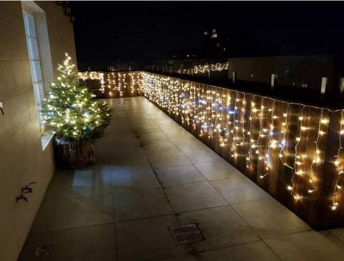 У залі є невеликий камін, плазмовий телевізор та просторий диван. Тут же стоїть барабанна установка, а в кутку під Новий рік сім'я ставить та прикрашає ялинку. На великому балконі зі скляною огорожею стоїть великий камін-мангал.