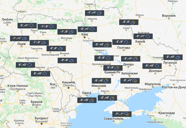 «Опади – мокрий сніг та дощ, як захоче температура повітря. Вона поки що залишається без особливих змін, невеликі «мінуси» – мляві «плюси», – написала Діденко.