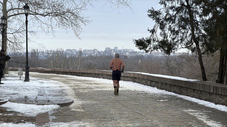 Він зазначив, що під час сильного морозу або вітру зменшує дистанцію, однак тренування не припиняє. Чоловік також бере участь у міських забігах, але наголошує, що рекорди для нього не є головною метою.