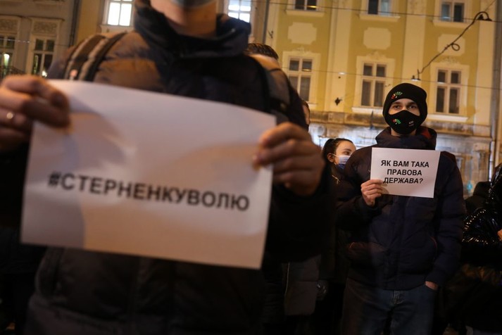 Львів'яни на площі Ринок зібралися на мітинг у підтримку екслідера одеського «Правого сектору» Сергія Стерненка, якого 23 лютого засудили до 7 років і 3 місяців ув’язнення.