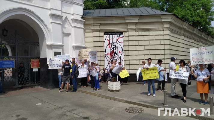 Під стінами Софії Київської, де проходить третій синод Української православної церкви, відбувається мітинг на підтримку Філарета.