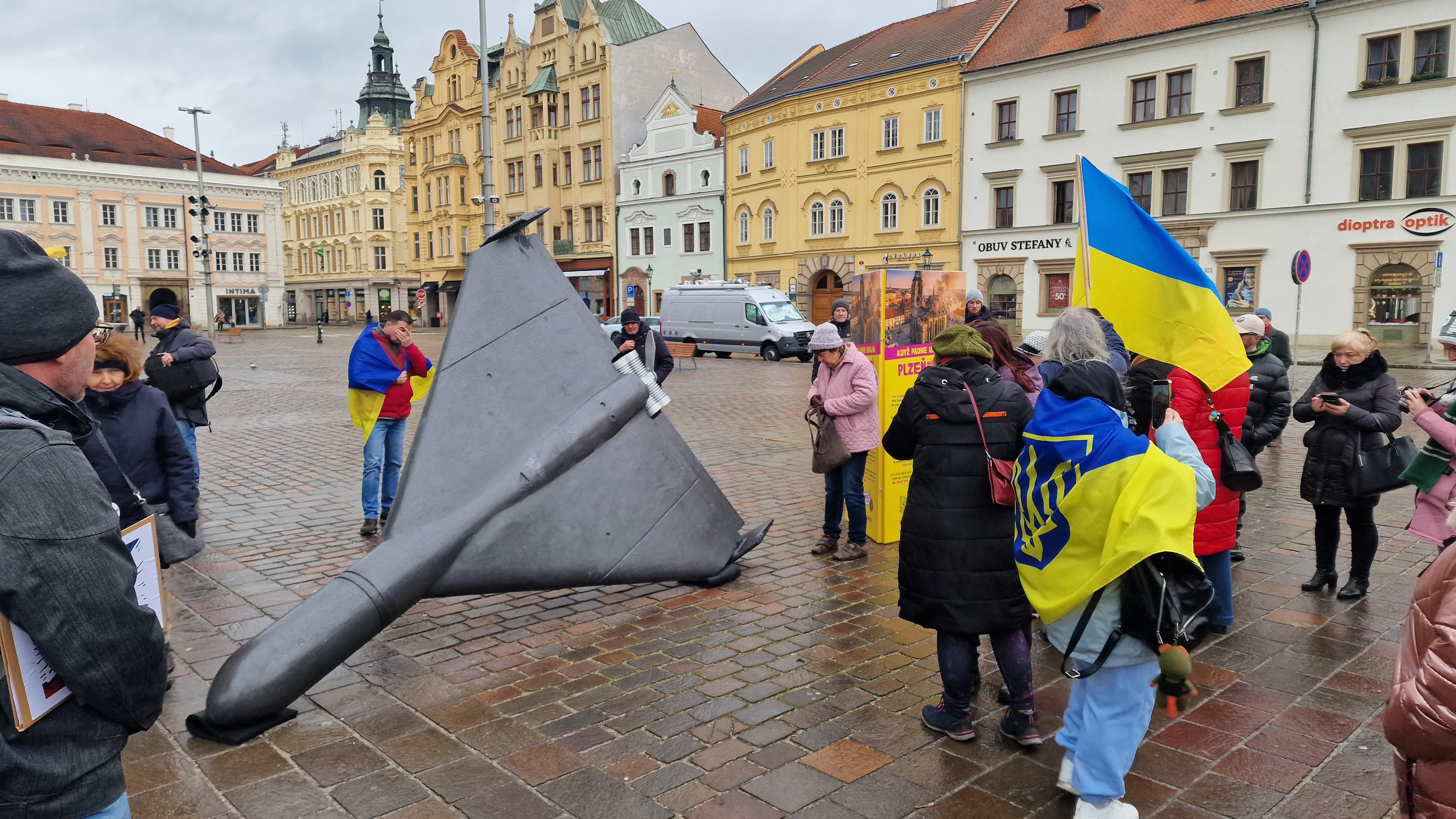 У чеському місті Плзень заходи до четвертої річниці повномасштабного вторгнення тривають декілька днів. Вони розпочались у суботу 21 лютого з різних заходів та мітингу під українськими прапорами, до якого долучилися багато людей. 24 лютого в Плзені пройде мітинг солідарності.