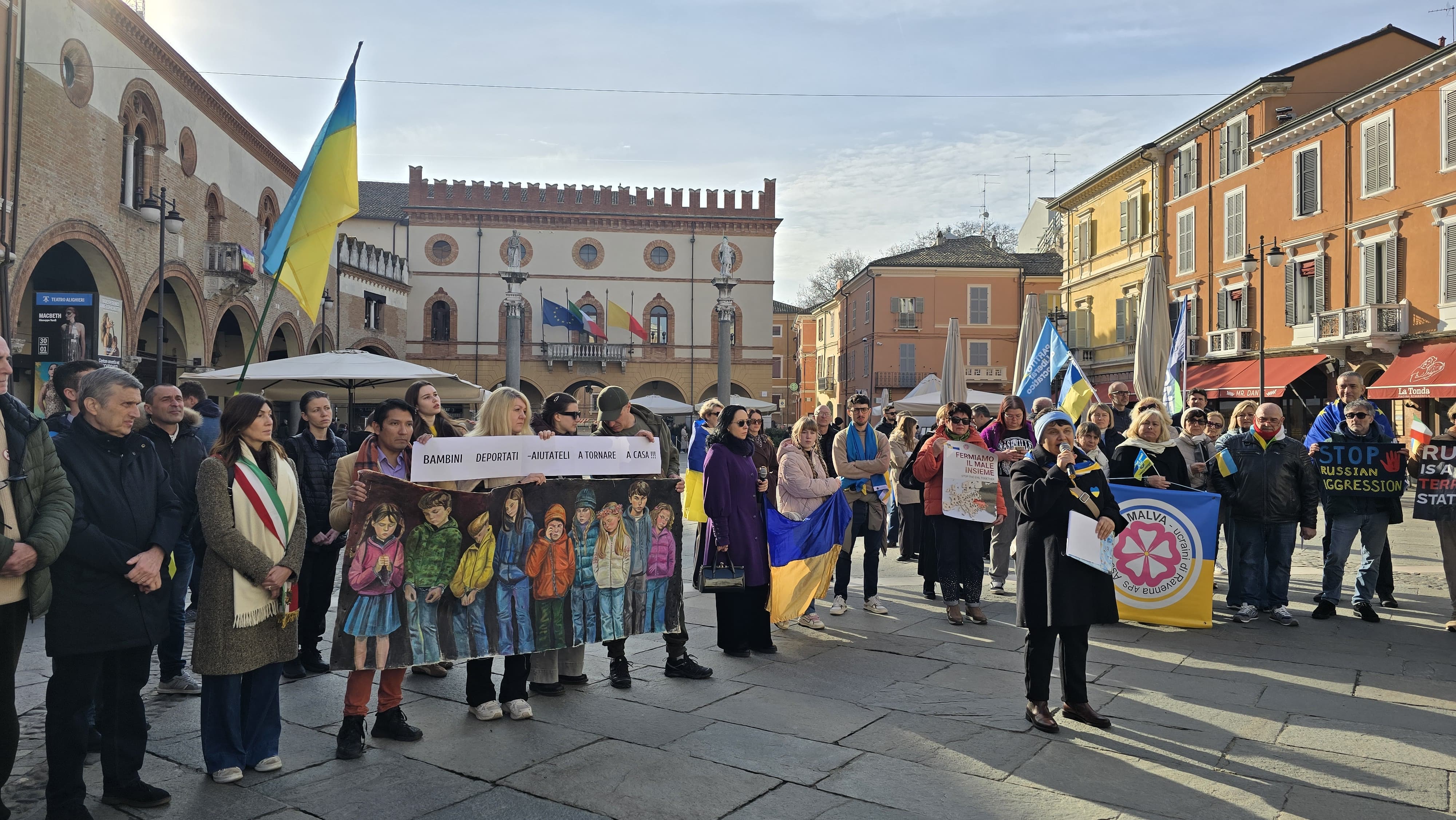 Ще одна акція в Італії пройшла в місті Равенні, яку організувала асоціація Malva. Мітинги в цьому місті тривають із 22 лютого. У день річниці повномасштабного вторгнення мешканці Равенні зможуть долучитися до перегляду документального фільму «2000 метрів до Андріївки». Також очікується флешмоб «Світло для України» біля міського театру Аліг’єрі.