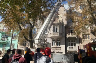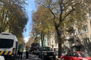 Частина вулиці Коновальця, на якій у будинок 4 вересня влучила російська балістична ракета, досі перекрита, її охороняють поліцейські. Чоловік загиблої від російського обстрілу Євгенії Базилевич та їхніх трьох доньок – 21-річної Ярини, 18-річної Дарини та 7-річної Емілії Ярослав Базилевич зміг потрапити у квартиру за допомогою крану.