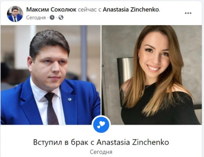 43-річний глава Державної міграційної служби Максим Соколюк і 23-річна Анастасія Зінченко (відома як «дівчина з собачкою з Вуханю») офіційно одружилися.