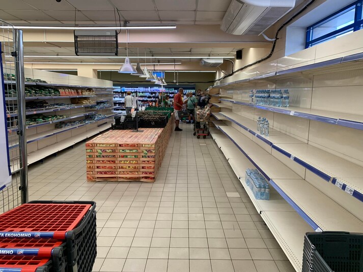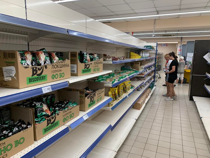У магазинах на Донеччині порожніють прилавки. Про це свідчать фото очевидців, які побували в місцевих крамницях.