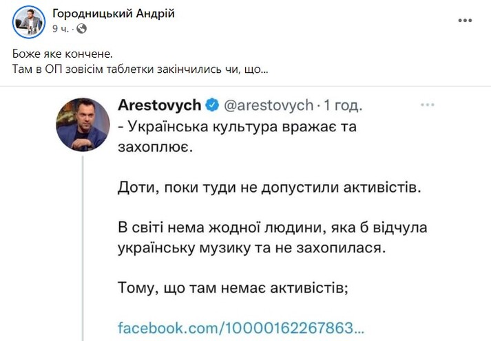 Соцмережі обурені такими словами від радника президента, та нагадують Арестовичу, що саме активісти пішли першими у черги до лав ТРО, а також постачають українській армії амуніцію та інші необхідні речі на фронт.