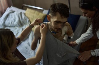 Андрій втратив обидві руки, очі та частково – слух. Зараз із ним постійно поруч дружина Аліна. Вона практично живе у шпиталі.