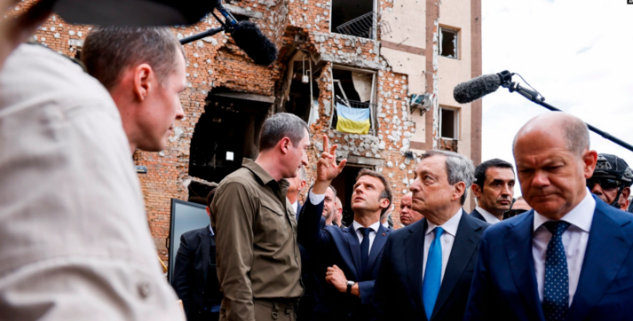 Сьогодні, 16 червня, прем'єр-міністр Італії Маріо Драгі, канцлер Німеччини Олаф Шольц та президент Франції Еммануель Макрон прибули до Києва. Також до делегації приєднався глава Румунії Клаус Йоханніс. Світові лідери відвідали Ірпінь, аби на власні очі побачити наслідки російських звірств.