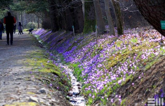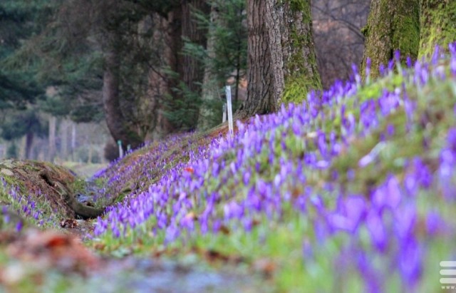 Ці чарівні келихоподібні квіти мають яскраве забарвлення від фіолетово-синього до білого. Величезний килим із тендітних шафранів на тлі різноманітних дерев, зібраних з усього світу, потопає в зелені і під дією променів сонця, розкривається у всій своїй красі.