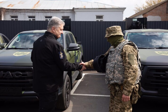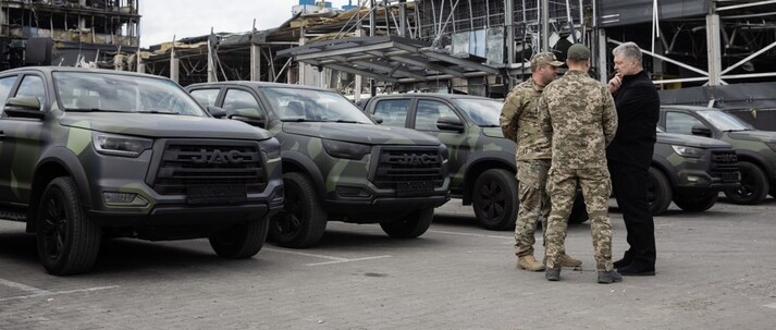 «Ми встигли завезти 5000 бронежилетів з фінської броні, з демпферами, з антирекошетом, високої якості, завезти радіостанції: цифрові, автомобільні, з ретрансляторами. Завезли тепловізори, снайперське обладнання, завезли все те, що не вистачало нашим воїнам. І от дійшла справа до техніки. Спілкуючись з нашими військовими, з представниками штурмових груп, використовуючи досвід 2014-2015 років, ми прийняли рішення поставити нові автомобілі, нові пікапи, які гарантовано проходять декілька років, повнопривідні, потужні», – пояснює Порошенко.