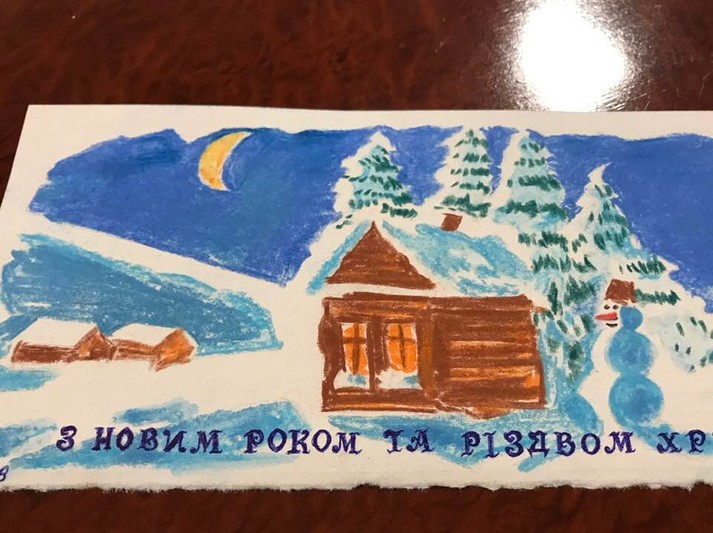 Від Сущенка перший віце-спікер отримала листівку. «І ще в моїй пошті - чудова листівка в стилі, як він сам написав, «українського примітивізму» від Романа Сущенка - українське село, малюнок крейдою», - написала Геращенко.